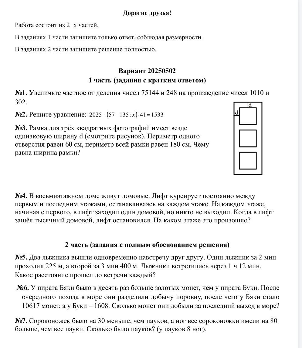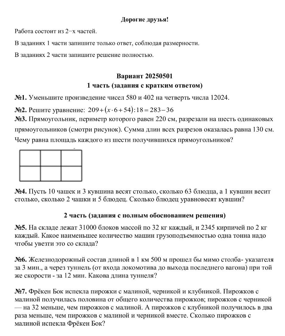 1533 (ЛИТ) Вариант по математике для поступающих в 5-й класс. 2025 - 1
